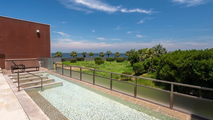 目の前に広がる海を眺めながら入る露天風呂は、開放感抜群で最高の癒やしを体験できます。温泉であることに加え、男女ともに寝湯が設けられているため、ゆったりと長時間くつろげるのも嬉しいポイントです。