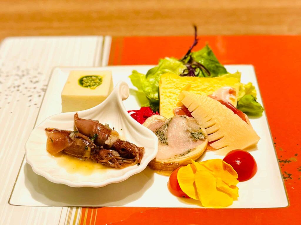 彩り豊かでひと口ごとに異なる風味を楽しめる構成。どれも軽やかな味わいで、コースのスタートにぴったりの前菜でした。