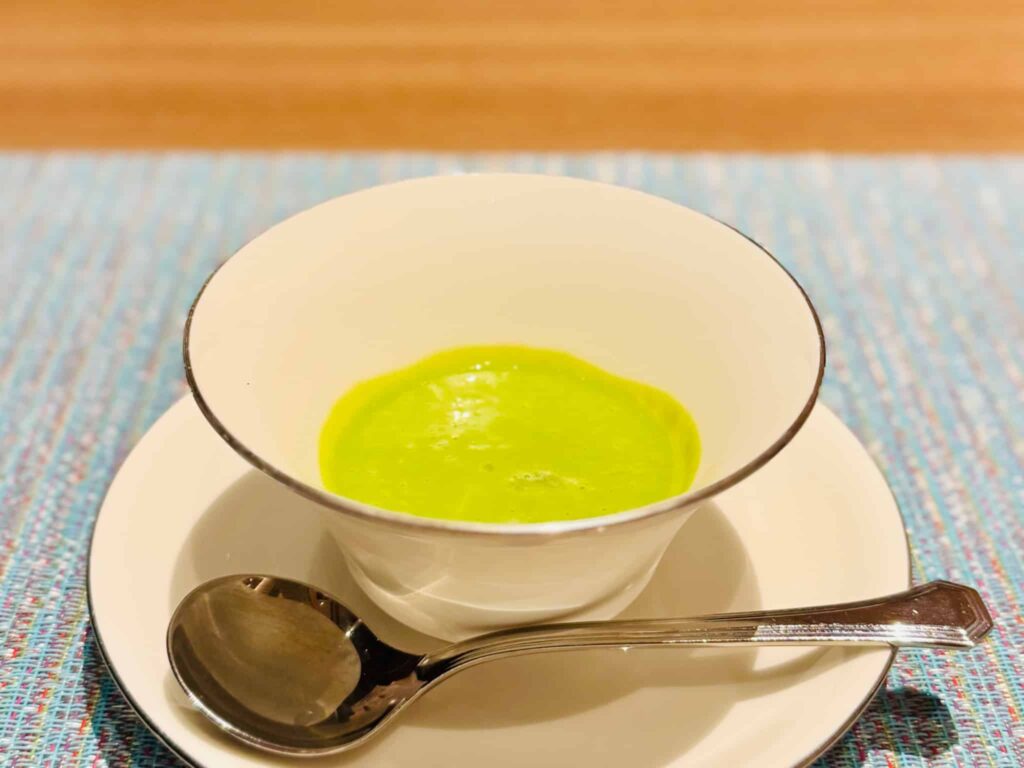グリーンピースの香りとやさしい甘みがクリーミーさに包まれて心地よく、グリーンピースが得意ではない僕でも美味しくいただきました。