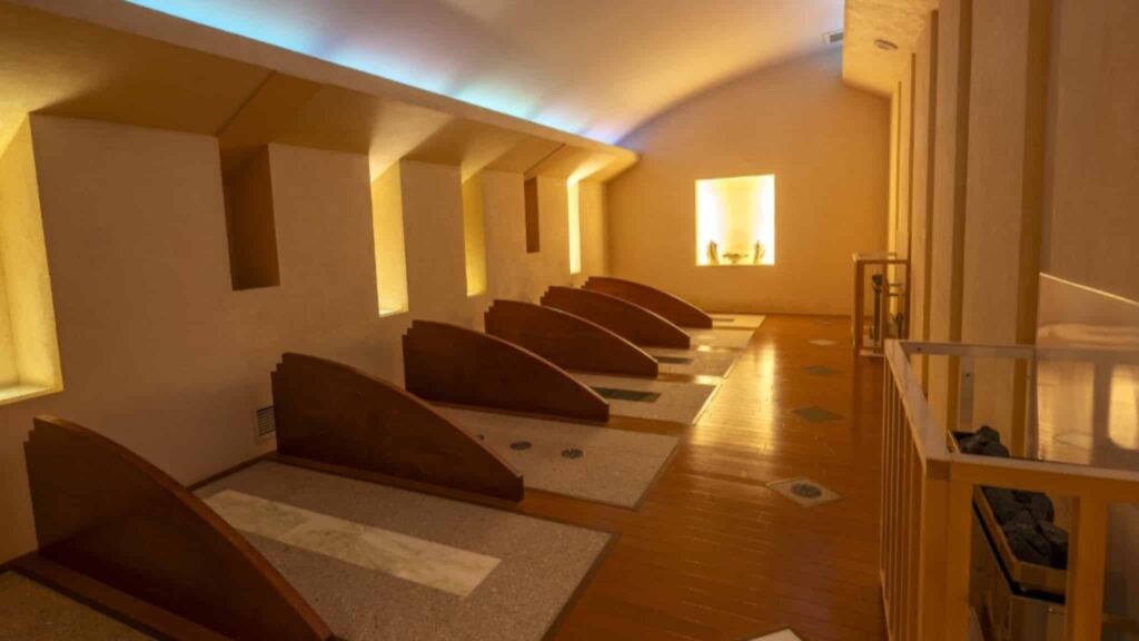 岩盤浴も用意されています。室温は約50度に保たれており、7種類それぞれ異なる石が敷き詰められているのが特徴です。