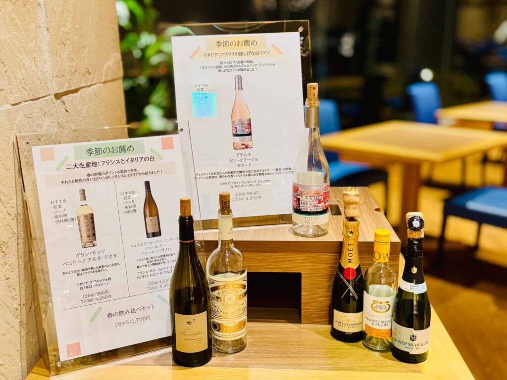 この日は特に白ワインがおすすめとして紹介されていて魚料理との相性も抜群でした。さらに、すべてのドリンクを自由に楽しめる「オールインクルーシブプラン」も用意されており、食事とともにゆったりとした時間を過ごせます。